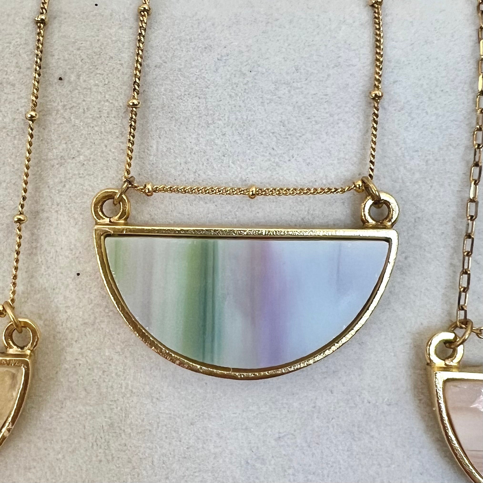 Hand-cut stained glass 18" Chain Lobster Clasp Jewelry findings are cast, formed and plated in the USA by another woman-owned small business. Plating is 24k gold or .999 fine silver. ...